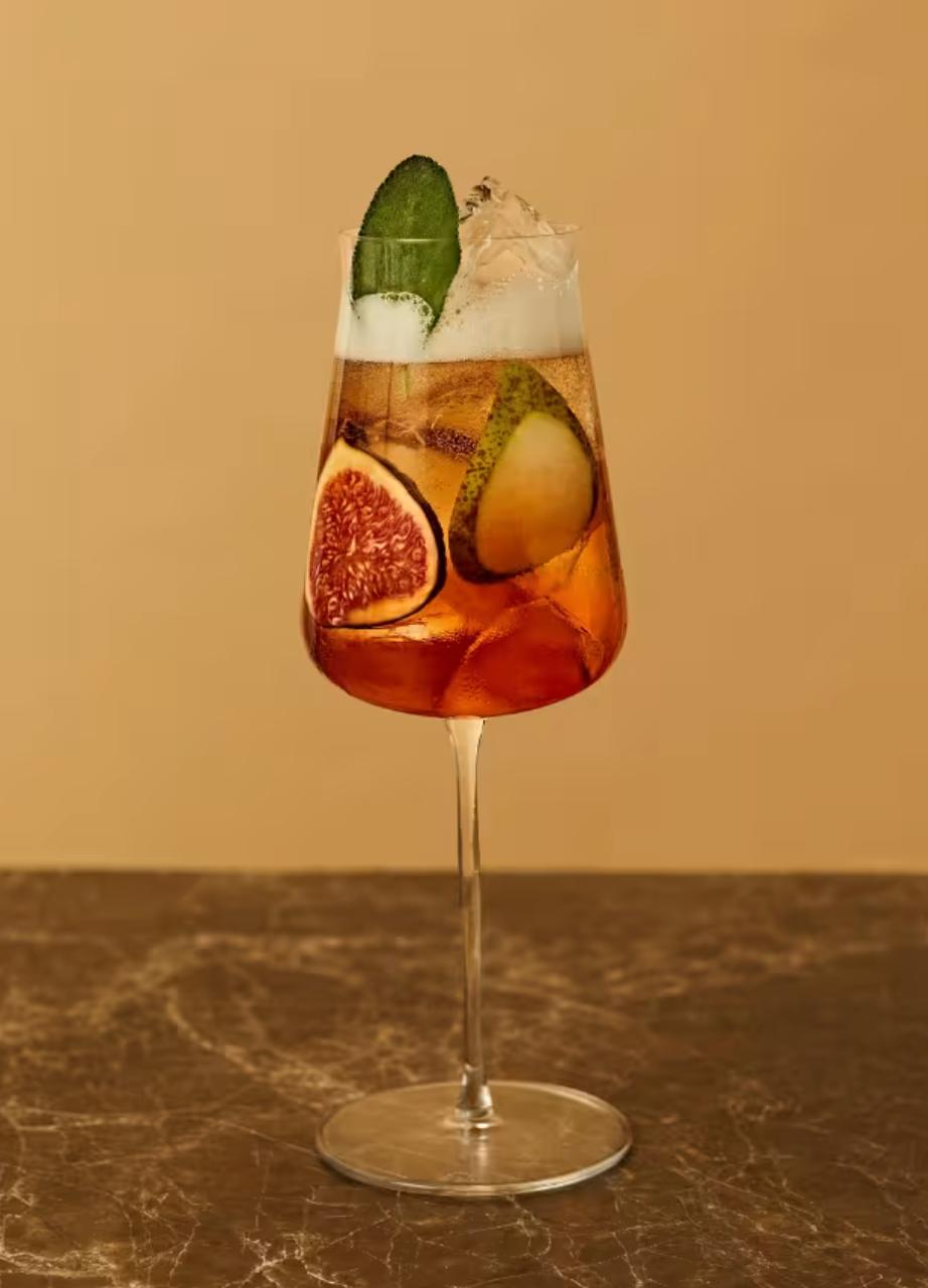Un highball sans alcool pensé pour l’hiver, associant figue maison, thé épicé et fraîcheur végétale de Seedlip. Le gingembre apporte relief et vivacité, tandis que la figue arrondit la texture pour une bouche chaleureuse, moderne et parfaitement équilibrée. Un cocktail réconfortant, subtil et naturellement élégant.